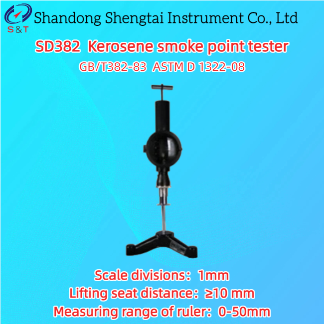 램프용 등유 및 제트 연료의 연기점, 즉 표준 램프에서 시료를 연소시킬 때 지정된 조건에서 무연 화염의 최대 높이를 밀리미터 단위로 측정합니다. 등유 및 제트 연료 심지는 GB/T382-83을 준수합니다. 등유 및 제트 연료의 연기점 측정 GT; ASTM D1322-08 등유 및 항공기 터빈 연료 연기점 표준 시험 방법, 램프용 등유 및 제트 연료의 연기점 측정용.