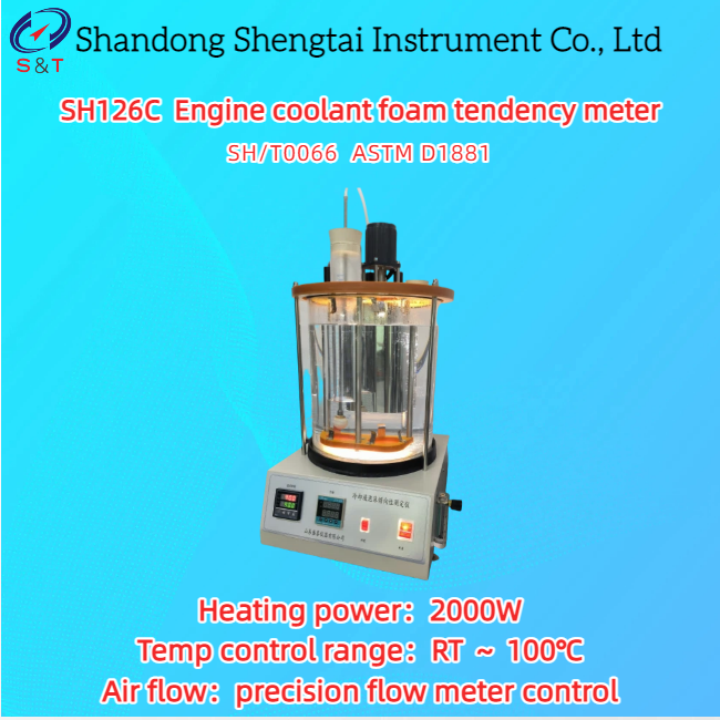 SH126C 엔진 냉각수 발포 경향 측정기는 중화인민공화국 석유화학 산업 표준 SH/T0066 "엔진 냉각 발포 측정 방법"의 요구 사항에 따라 설계되었으며, SH/T0066 표준의 시험 방법에 따라 희석 또는 농축된 엔진 냉각수의 발포를 측정하는 데 적합합니다.
