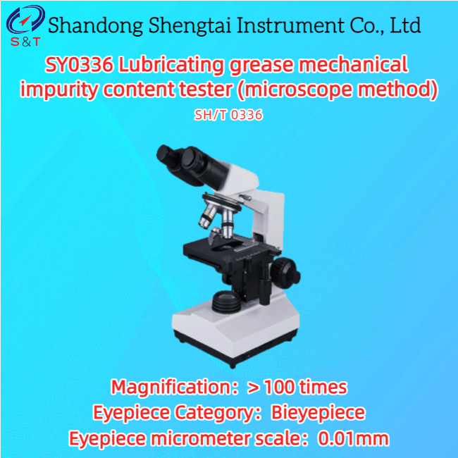 SY0336 Lubrication grease mechanical impurity degree meter is designed and manufactured according to the national industry standard SH/T 0336-1994 "grease impurity content determination method (microscope method)"그것은 윤활유의 기계적 불순물 함량을 감지하기위한 환경 보호 과학 검출 방법입니다.
