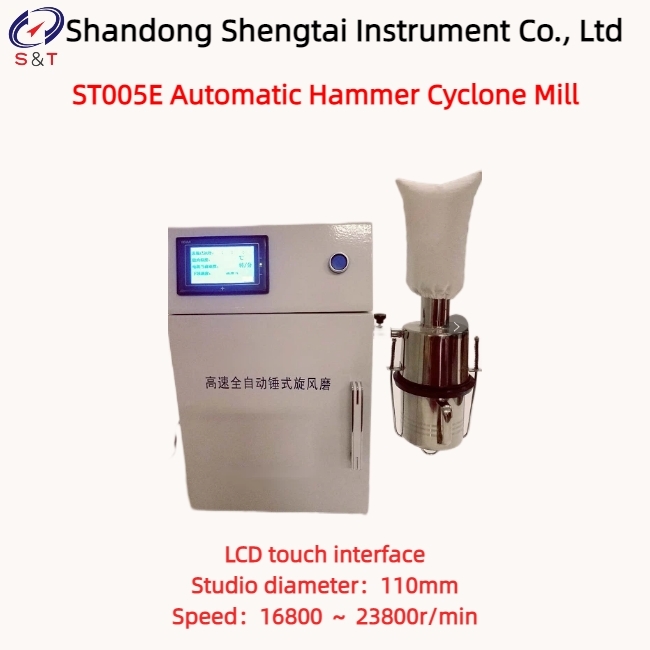 ST005E Automatic hammer cyclone mill is a crushing equipment with beautiful appearance, compact structure, simple operation, smooth operation, and durability. High speed constant temperature automatic hammer type cyclone mill is mainly suitable for crushing small and medium-sized particles (water content meets national standards) such as wheat and rice in the grain industry. The samples crushed by this machine (passing through different aperture sieve plates) are suitable for measuring the quantity and quality of gluten, preparing samples with precision requirements such as drop value, near-infrared composition, and grain viscosity, as well as measuring and analyzing various indicators.